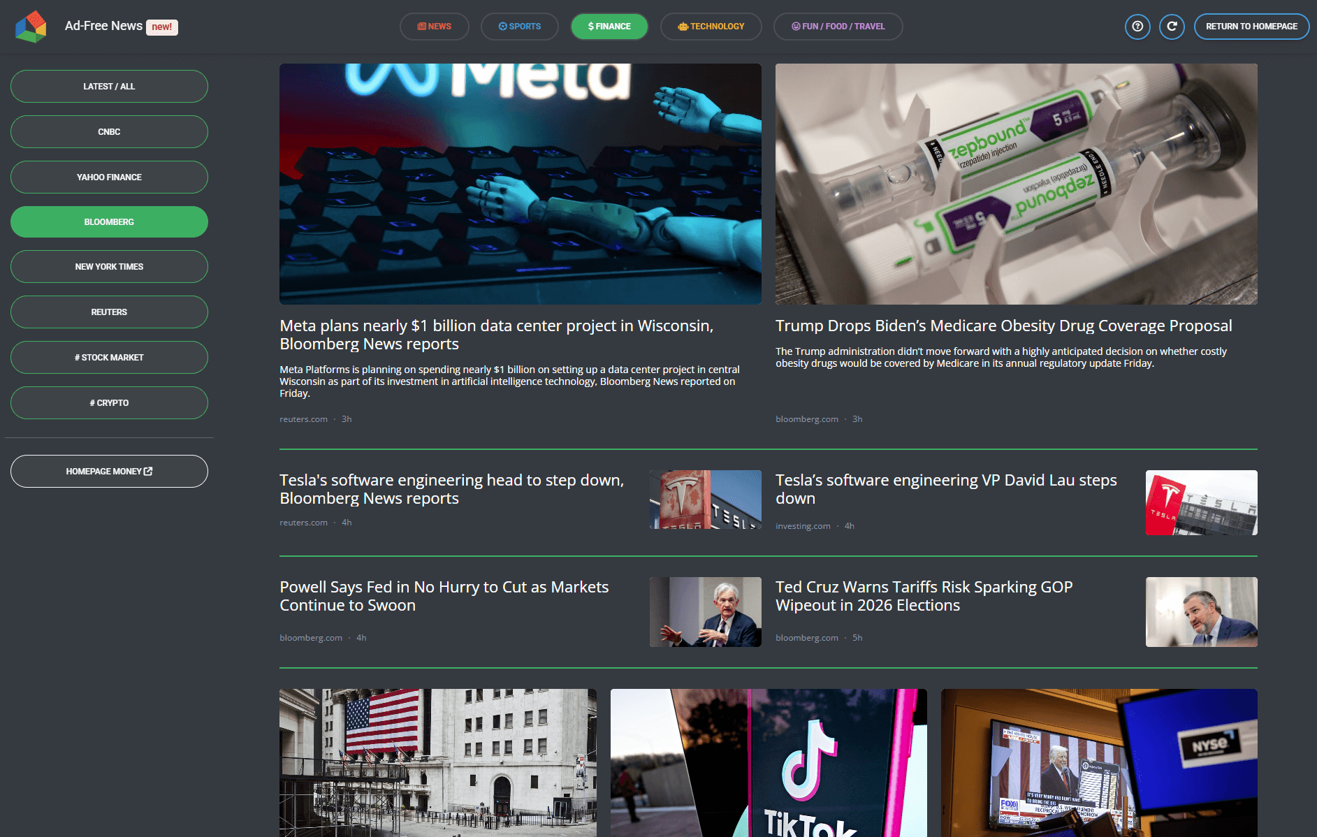 Live news, without ads, and accessible in 1-click. Global, financial, sports news, plus travel, food, and more.